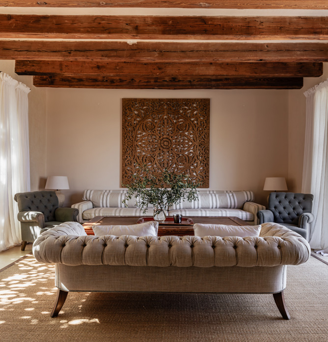 Die nach traditionellem Vorbild erbaute Finca liegt eingebettet in einem weitläufigen Naturschutzgebiet im Südosten Mallorcas. Das 150.000 qm große Anwesen bietet absolute Privatsphäre und einen atemberaubenden Blick vom Haupthaus auf die mediterrane Landschaft. Die Wohnfläche beträgt 480 qm, auf denen bis zu zwölf Gäste mit zwei Salons, einem Eßzimmer und sechs Schlafzimmern mit Doppelbetten und en-suite Bädern viel Raum zum Relaxen finden.